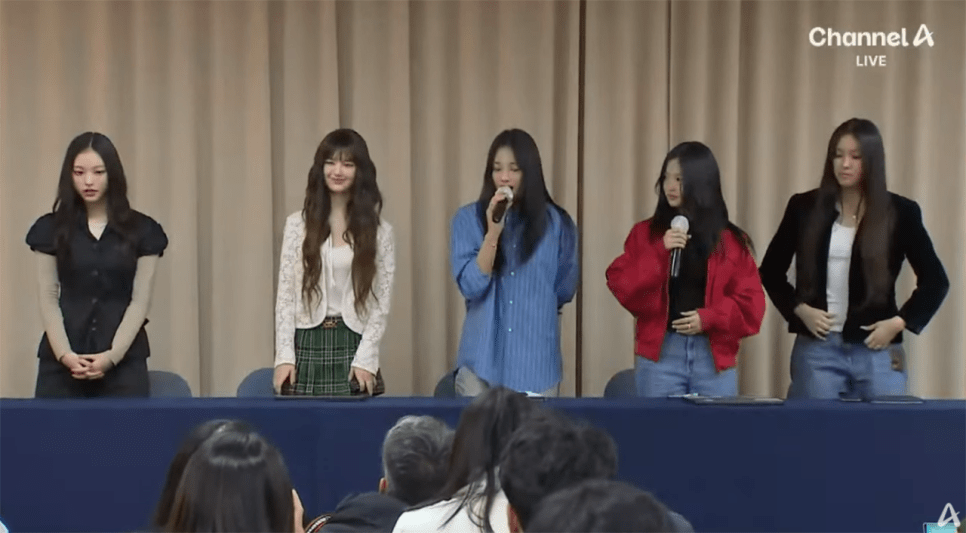 하니는 기자회견 초반 발언에서 “이번 기자회견은 단순히 해지 결정을 알리는 자리가 아니라, 그간의 과정과 우리의 입장을 명확히 설명하기 위한 자리”라며 9월 유튜브 라이브 방송과 최근 어도어에 보낸 내용증명을 언급했습니다. 모든 절차는 멤버 전원이 충분한 논의를 거쳐 결정한 것임을 강조했다. 이어 “어도어가 아티스트 보호라는 기본적인 책무를 외면했다. 개선 의지조차 없는 회사에 더 이상 기대를 걸 수 없었다”라고 말했습니다.
